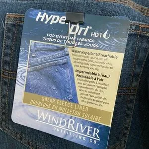 Windriver Men’s solar fleece lined jeans Water repellent/ breathable Outer shell 100% cotton Lining 100% polyester 36x30