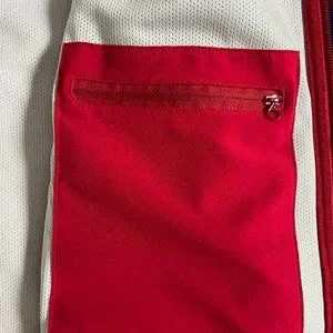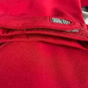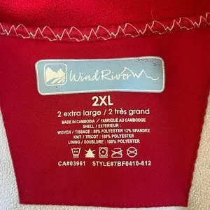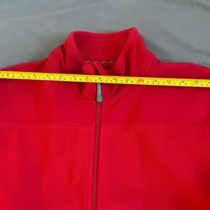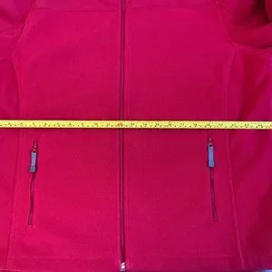 In excellent condition. Main body is polar fleece while soft shell covering the shoulders and top of the arms to ward off drizzle. Zippers are in excellent working condition. There are two front zippered pockets and one inner zippered pocket on the left. Velcro on wrist band.