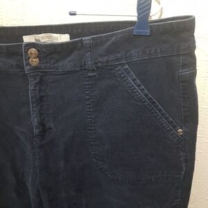 WindRiver high rise blue corduroy pants. Sz 14x32, see measurements as inseam is not 32". Stretchy. 4 pockets, back 2 embroidered. Belt loops. Zipper 2 button fly. 98% cotton, 2% spandex. Approximate flat lay measurements: inseam 30.5", rise 11", waist 17.5". Smoke free home.