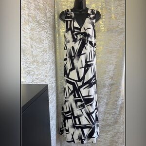 Windsmoor Women’s White/Black Abstract 100% Silk Print Maxi Dress