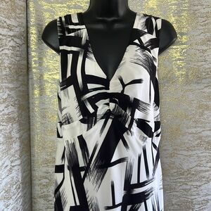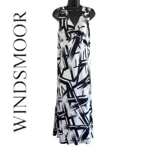 - Windsmoor White/Black Abstract Print Maxi Dress with Side zipper closure is a chic and stylish piece that is perfect for any occasion. The dress features a beautiful abstract print which is eye-catching and fashionable. The dress is v-neck that adds a touch of elegance and sophistication and a flattering silhouette that complements any body type.100% silk
