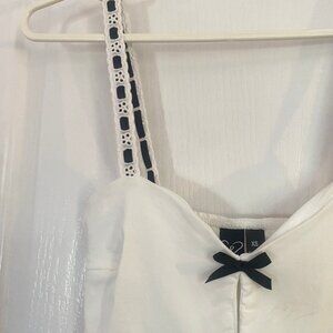 Style: Feminine, fitted tank top with a cute front bow tie.