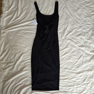 Windsor Slinky Midi Little Black Dress with Open Tie-Back NWT