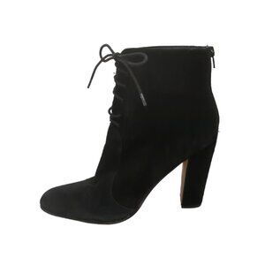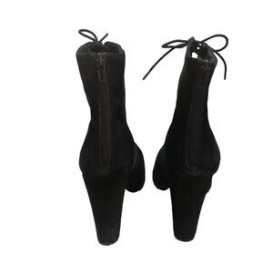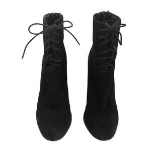 These are black suede lace up block heel boots by Windsor Smith.