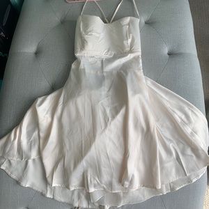 Slay the night away in our beautiful Sonya satin dress! She features a sleeveless square neckline with a built-in padded bust for support, adjustable spaghetti straps, and a cross-back lace-up design that lets you adjust the fit. Her short skater skirt is flowy enough to make some dance moves tonight! The dress is composed of a satin-like fabric that has a very flattering finish. Style this dress with sparkling earrings and classic block heels.