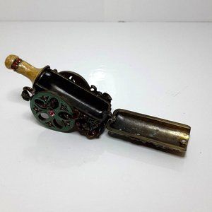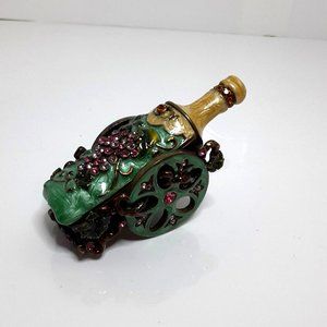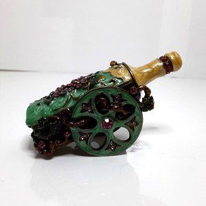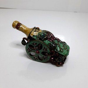 Wine Bottle Cart Stash Pill Trinket Box Enameled Brass Crystals
