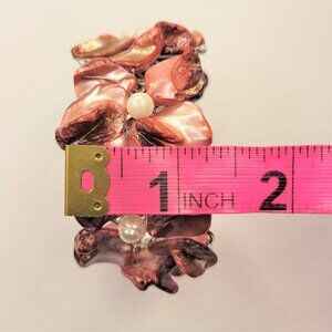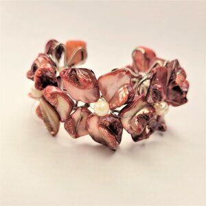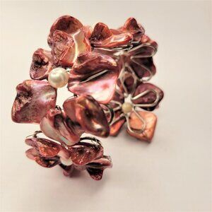 Cuff Bangle in a floral motif with genuine shell and pearls