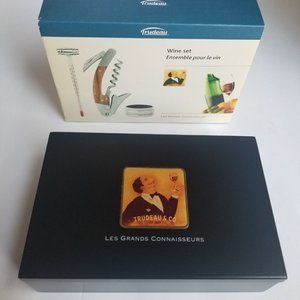 Wine Tool Set Corkscrew Thermometer Wine Ring Wood Case Bar Tools Trudeau