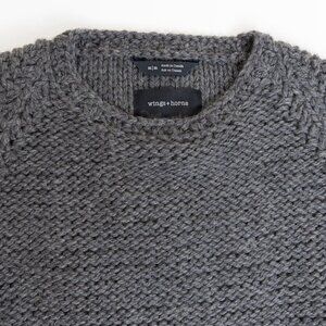 Wings + Horns Chunky Wool Sweater Peruvian Knit Warm Heavy Cozy Gray