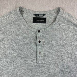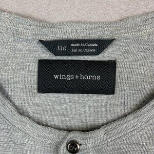 Wings + Horns Mens Shirt Large Gray Heather Slub Rib Henley Long Sleeve Knit