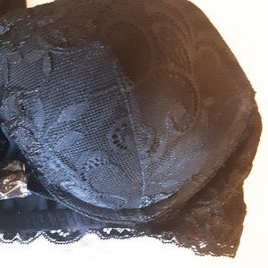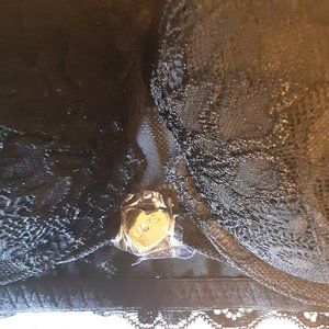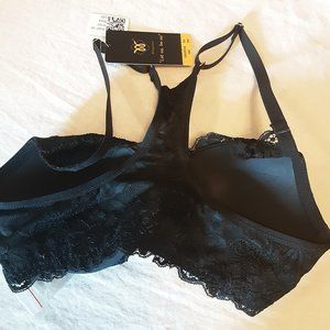 Wingslove New 32D Front Bra with Necklace Plunge Racerback Lace Black