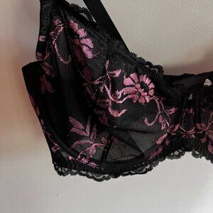 Wingslove lace bra size 44D Black & Pink Underwire Unlined NWT
