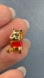 Tiny Pooh bear charm seated with paw raised ready to eat some honey. Red and gold tone.