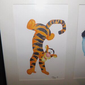 This Winnie the Pooh and Friends (Piglet Tigger and Eeyore ) 4 Framed Prints wall art Baby Room Decor is in Great clean condition. Entire frame measures 19" Long and 8.25" Hight. Each Print is 5.5" wide by 3.5" each . The images look the originals were hand drawn and singed shay '19 - these are prints of the drawings. Perfect Nursery Decor.