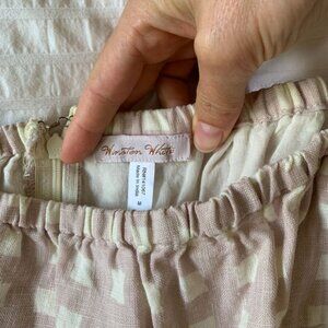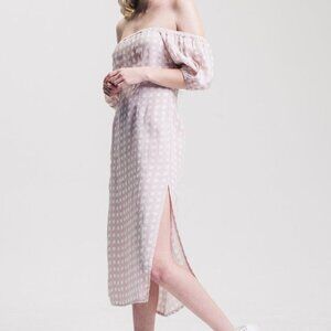 This Winston White Lotus off the shoulder midi dress is what linen dreams are made of. This fabric paired with the mauve/lilac gingham print is perfect for any summer occasion.