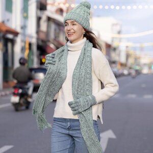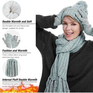 Applicable Occasions: Women's warm beanie hat 3 in 1 comes touch screen gloves a knitted hat and warm scarf. Designed for warmth, this scarf and hat set for women,allowing you to hiking, ice-skating, skiing and traveling keep you perfectly warm and fashionable in cold winter