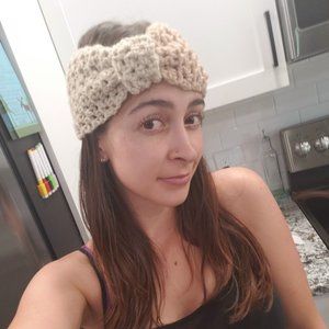 Crochet bow headband. Perfect for chilly, casual outings to warm your ears! Yarn is Caron Marble Cakes brand from Michael's. Stretchy material. This headband was made with lots of love!