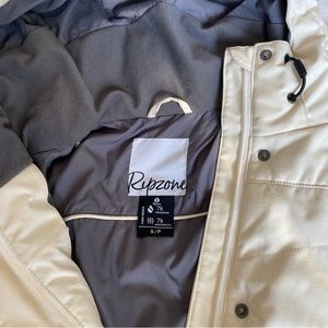 Features armpit vents, adjustable hood, zip pockets, interior mesh pocket, powder skirt.