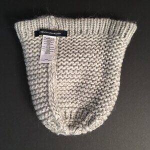 This is a women's French Connection hat in size S/M, made in Italy from yarn containing 60% wool. The hat is in like-new condition. It is suitable for both small and medium head sizes.