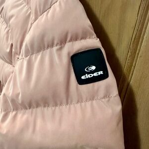 Winter jacket ideal for daily use or skiing. Nice pale pink and puffy style. Size M. Big cozy hood to protect from the snow and the cold.