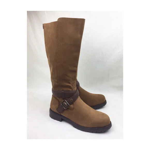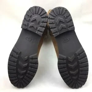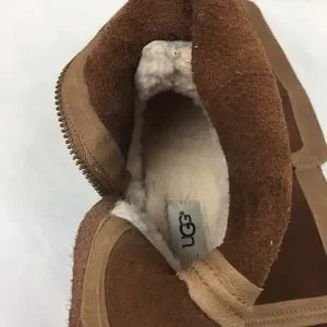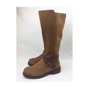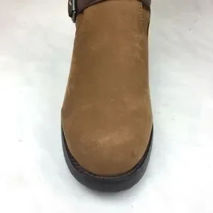 UGG Harington chestnut suede water resistant winter riding boots with brown leather strap side metal buckle details. Tall comfortable size 8.5 fit, almost to the knee, with side metal zipper closure. New barely worn black rubber trends for ice, snow and rain. Stylish high fashion boots to wear with dresses and short skirts. Warm cushioned fuzzy fur cream liner with scalloped top edge detail. Reposhing item from @prelovedesigner. Loved it, but ready to rotate for something new.