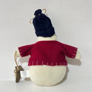 A lovable and snug companion, perfect for adding festive joy to chilly winter days. This charming plush snowman is dressed for the season in a cozy red fleece jacket with tan and navy patch pockets, paired with a navy blue fleece hat and matching mittens. With shiny black bead eyes, a classic carrot nose, and a heartwarming smile, he’s sure to bring cheer to your holiday décor.