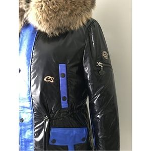 Handcrafted in Europe (Limited Edition), luxurious mink fur lining from Finland/Saga mink fur (Certified farmed furs), and intarsia the mink furs in Greece. Classic solid intarsia colours Finnraccoon fur collar (12cm width) and detachable on hood, Italy/made Hi-Tech ultra lightweight, soft and shiny metallic effect. Durable, weatherproof and breathable, a unique design with smooth metallic nappa leather trims for entire sleeves, front and back, with exclusives fini.