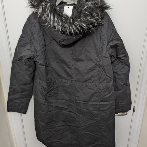Long Tall Sally winter coat size 16 UK. Never worn and tags still on. Fur lining around the hood can be detached. Entire hood can also be detached. Drawstring around waist.