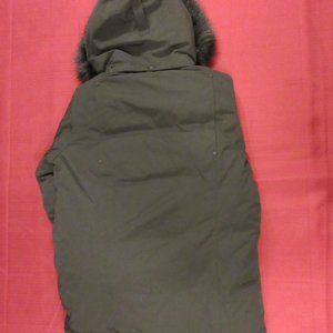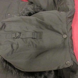 Good morning! Onyx brand coat for men is extra - small in size, coat is brand new with no defects and with tags, colour black, made without feathers and cruelty to animals, using 3M technology and materials and fabrics that protects against rain, cold, wind and any other winter elements, the coat has four outside pockets and one inside pocket, it is possible to detach the hood and the fake fur as well, and at the end of the sleeves there is a closure lightning, the jacket has the warmest insulation of this brand and product and jacket, front length of coat: 30 inches, back length of coat 34 1/2 inches, side-to-side height 22 inches, all-around coat dimension 44 inches, sleeve length from top of shoulders to bottom 26 inches, please see the photos for more information on the jacket.