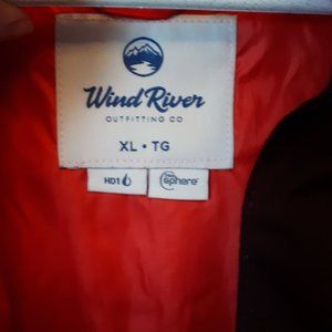 Dark purple with red puffy lining. Wind river brand, very warm.