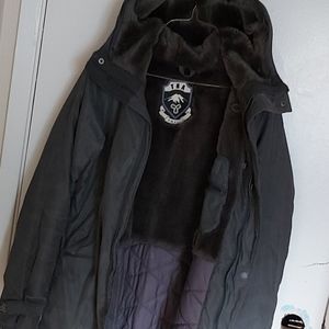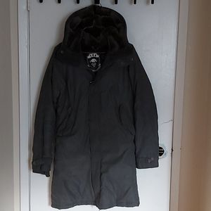 Mid length grey TNA jacket with fur lining