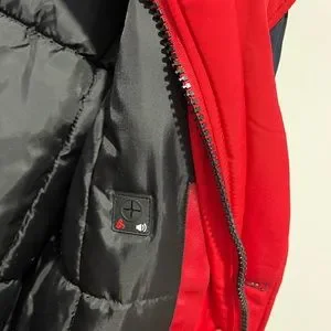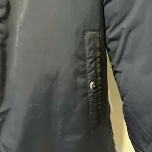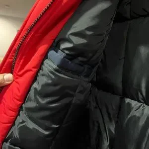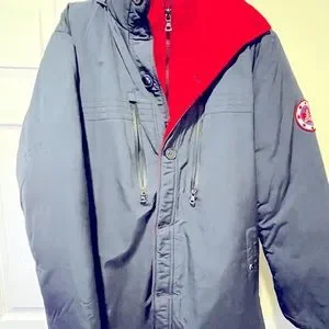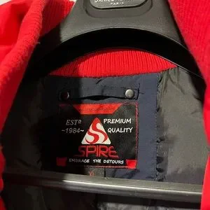Spire brand Dark blue with red interior XL size winter jacket with concealed zipper for more warmth lots of pockets warm hood 100% polystyrene filling for extra warmth faux fur hood