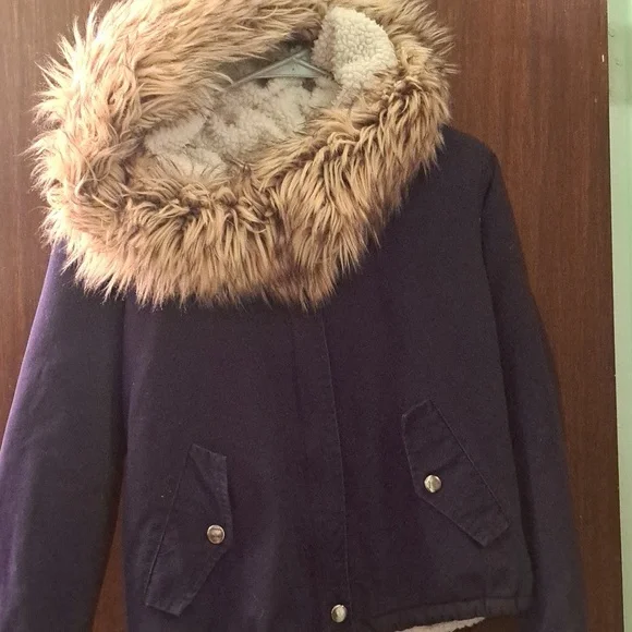 no tags on this coat it's so cute with the over size hood snap pockets. small to medium fit.