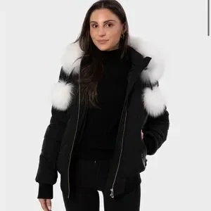 Size large but fits small. Never worn but I can’t return it. Real leather and fur. I offer a 200$ credit in the same shop call Cuir Dimitri in Montreal or online