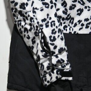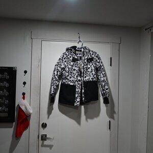 Winter jacket by Ripzone Size Med adjustable sleeve with pockets and hood White and black color with black prints great for them winter days to keep you warm