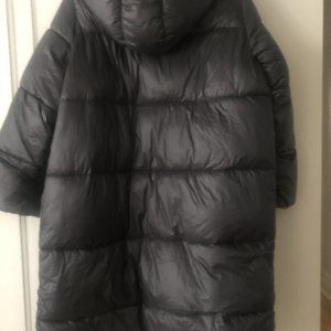 Used just one time. Was too warm for me. Colour Dark Grey, its kind of blackish. Very warm. Size M, but its oversized. Back: length 102.3cm (size M), Sleeve: 63.9cm