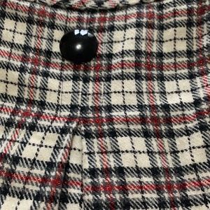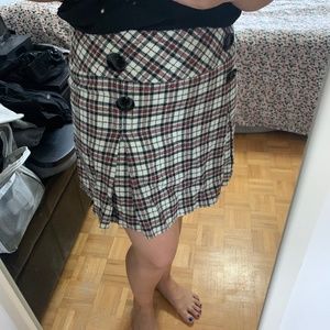 mini skirt in wool type fabric, lined, with 2 pleas in front not stretch zipper at the back