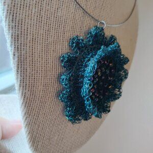 Wire Mesh One of a Kind Necklace Floral Wearable Art Piece
