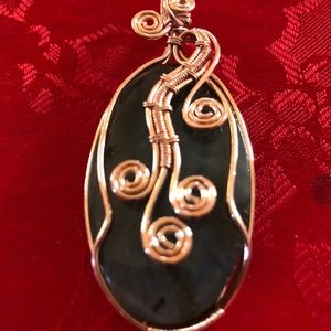 Silver and copper wire. Handmade. Natural Stones. Come with 30 inch cord or sterling silver chain.