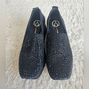 Elegant black loafers with a textured design. Comfortable and stylish for everyday wear. Size 4.5M