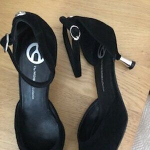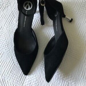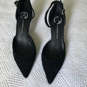 Dressy Pumps with ankle strap closure, Comfy heal 6cm , natural black suede, little used, Excellent condition !