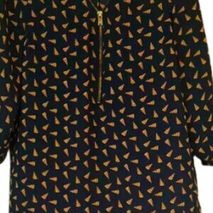 This casual and fun dress shirt from Wishful Park showcases a stylish pizza pattern with a mandarin collar and 3/4 cuffed sleeves. The crew neck design adds a timeless appeal, making it ideal for both work and casual settings. Its lightweight fabric and flowing silhouette ensure comfort and elegance throughout the day. 🍕