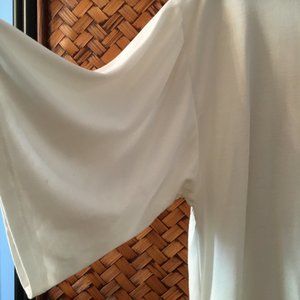 Excellent preowned condition, white button down shirt with tie up feature by Wishlist. This shirt is adorable and has a lot of good things going for it. Lightweight, comfortable and made of sustainable bamboo fabric, it's the perfect addition to a summer wardrobe. The sleeves are not too long and not too short. The buttons are delicate and draw just the right amount of attention to them. It's tagged as a small, but has a baggy, oversized fit (please see measurements below for details).