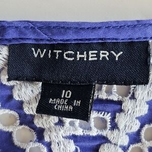 Witchery Silk Puff Sleeve Eyelet Purple Blue Top Size 10