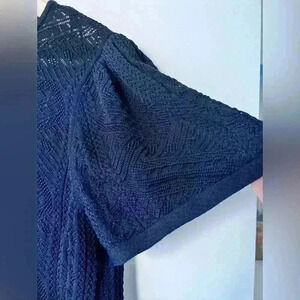 Witchery Women’s Navy Blue Garden Girl Preppy Prep Sheer Puff Sleeve Top Small
