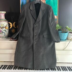 Stay warm and stylish with this classic gray overcoat. Perfect for any occasion. Tag says 44 L/XL. See measurements.