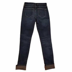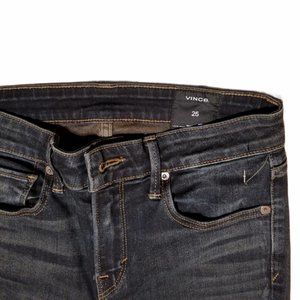 VINCE Dark Blue Distressed Jeans in Women's Size 25 in EUC. Waist across laid flat is @ 13" & Length is @40". Front Rise @ 9",Rear Rise is @14' made of 92% Cotton, 6%Elastomultiester & 2% Elastane. Tried on but were NEVER WORN! Be the the 1st to sport these! Tan interior makes them look even better cuffed!