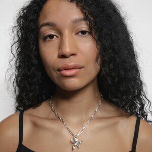 Bloom with the Lilah Necklace from Wolf Circus. This sterling silver necklace features an elegant, abstract flower centred on a bold chain. Contemporary and chic, this piece is a sleek statement piece for any jewellery collection.