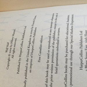 Wolf Hall by Hilary Mantel First Canadian edition 2009 Man book prize winner, very good used condition.
