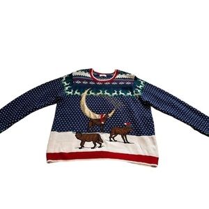 Be the envy of all of your friends in this amazing sweater. 3 wolves, 2 wearing Christmas hats, and 1 wearing antlers, it does not get much better than this!